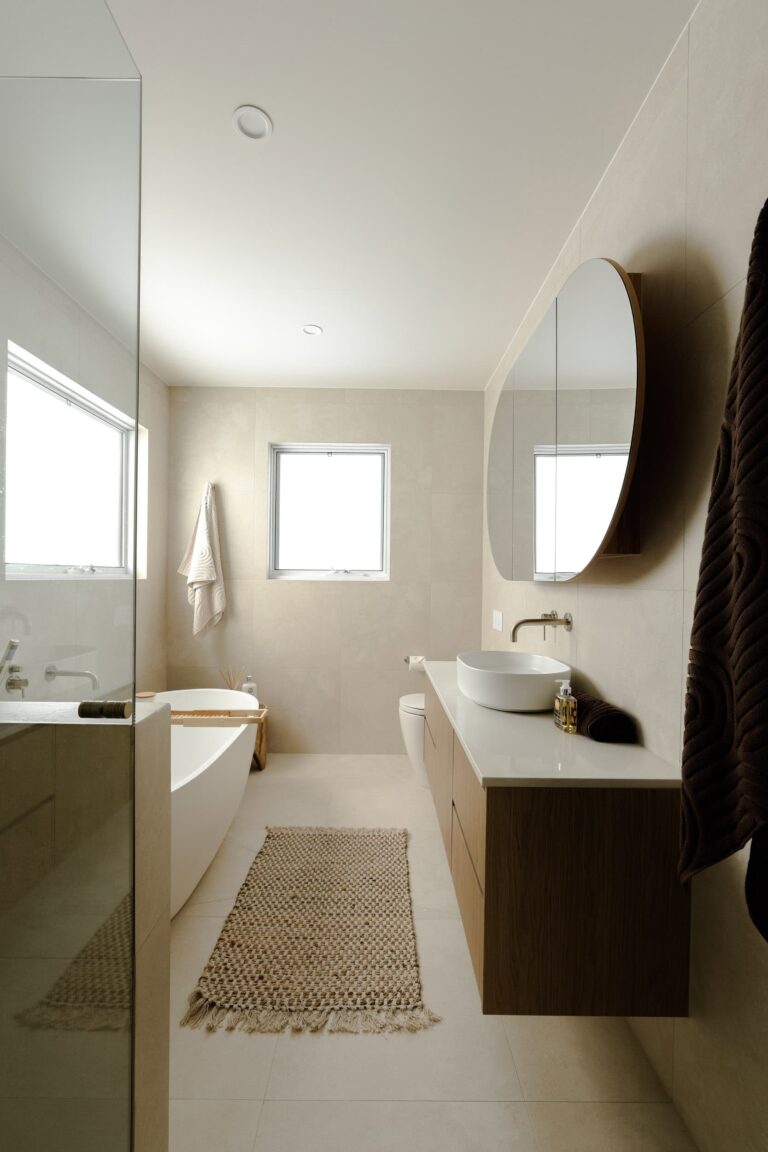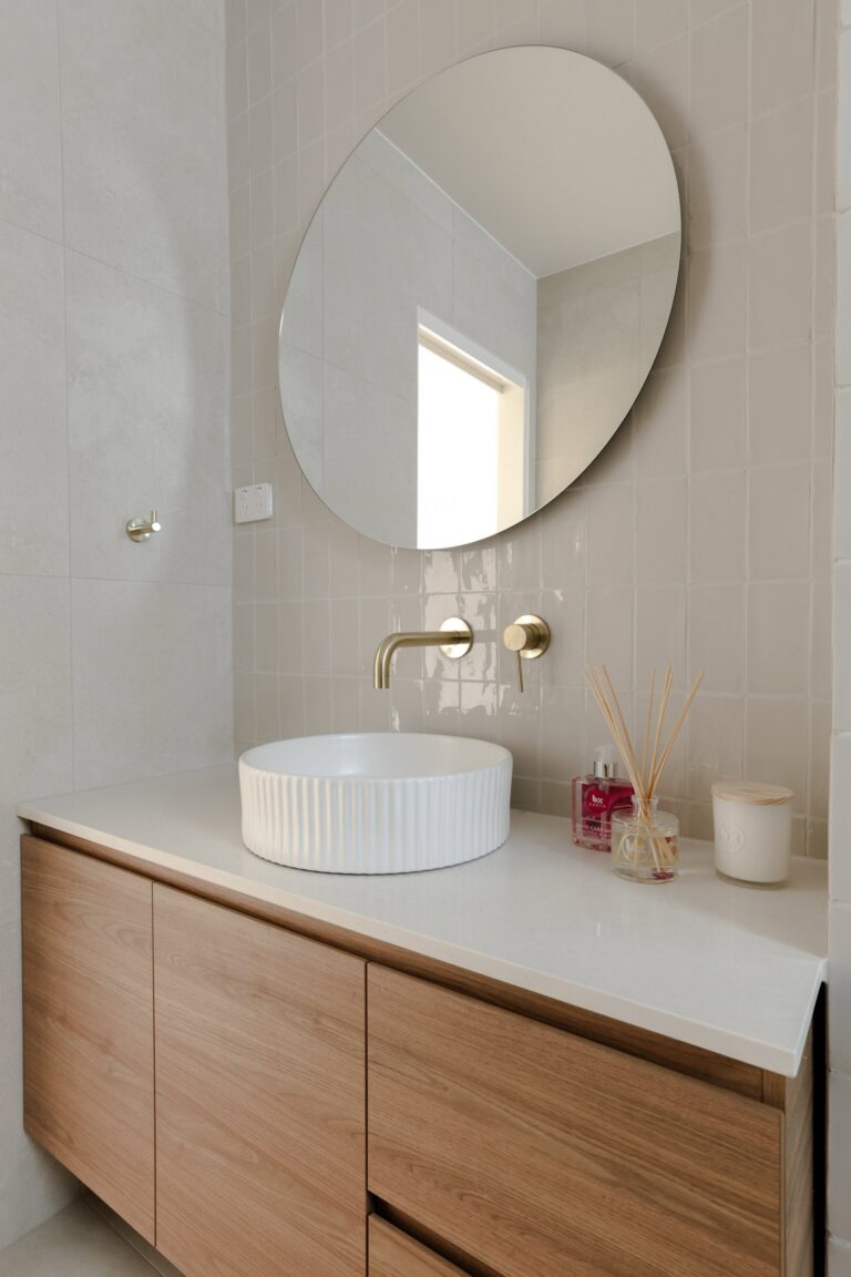 Sunset Place in Earlwood is more than just a home – it’s a sanctuary. Here, travertine tiles, sandstone cladding, and natural textures come together to create spaces that feel calm, grounded, and designed to last a lifetime. With warm tones, softly textured surfaces, and monochromatic layers, this home radiates serenity and timeless luxury.