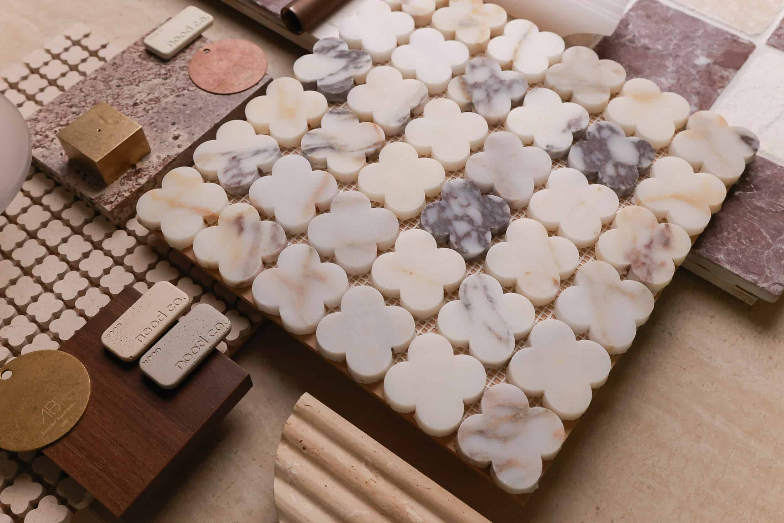 The Alhambra Flower Viola Marble Mosaic is a Design Tiles exclusive, celebrating timeless elegance in a first-of-its-kind quatrefoil design. Inspired by the intricate detailing of the Alhambra Palace in Spain, each precision-cut stone piece highlights the warm creamy tones and subtle veining of Viola Marble. Available in large (49 mm) formats, this collection offers flexibility for statement walls, bespoke niches, floors, and architectural details.
