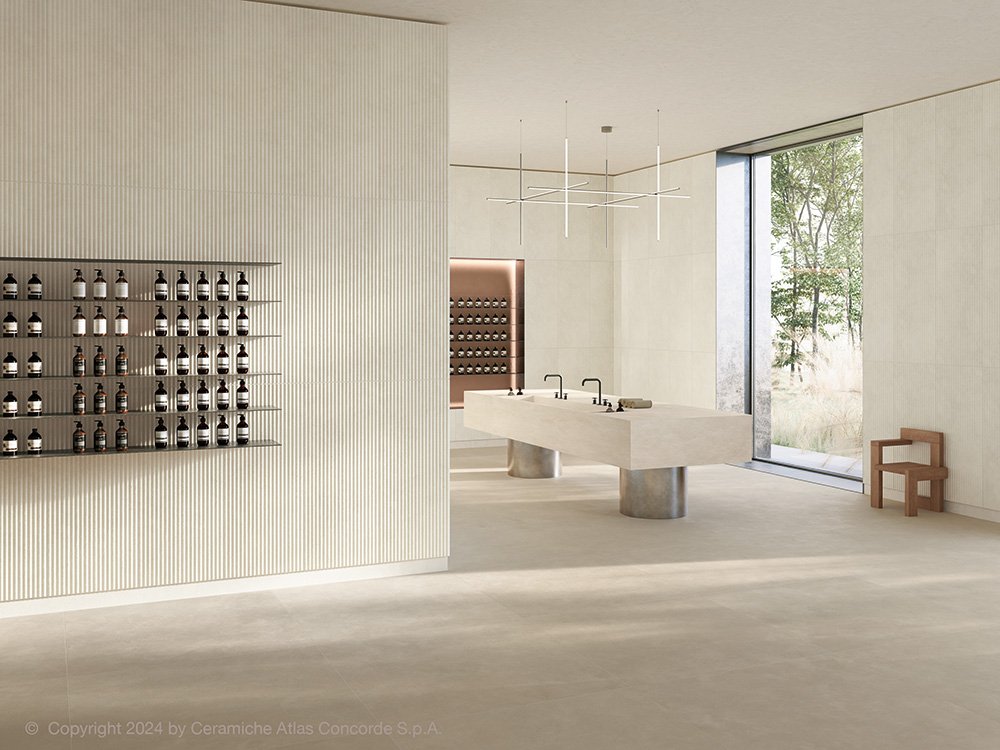 Surface : Atlas Concorde Laboratories unveils Sensitech, a cutting-edge porcelain tile surface crafted with an exclusive Italian method. Combining high slip resistance with a luxurious soft touch, Sensitech redefines surfaces, offering durability, dirt resistance, and easy cleaning. Elevate your spaces with its comforting, protective, and refined touch.
