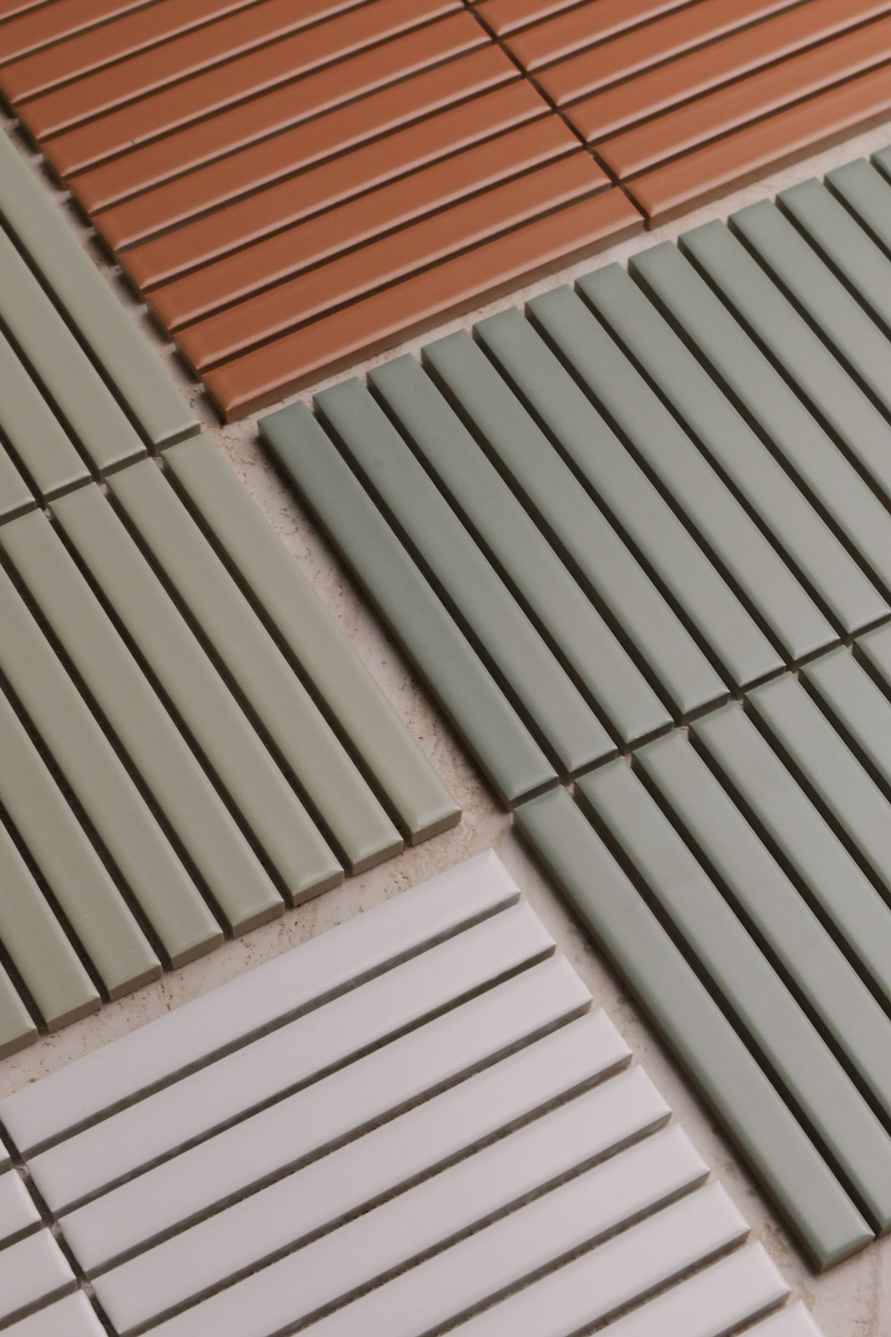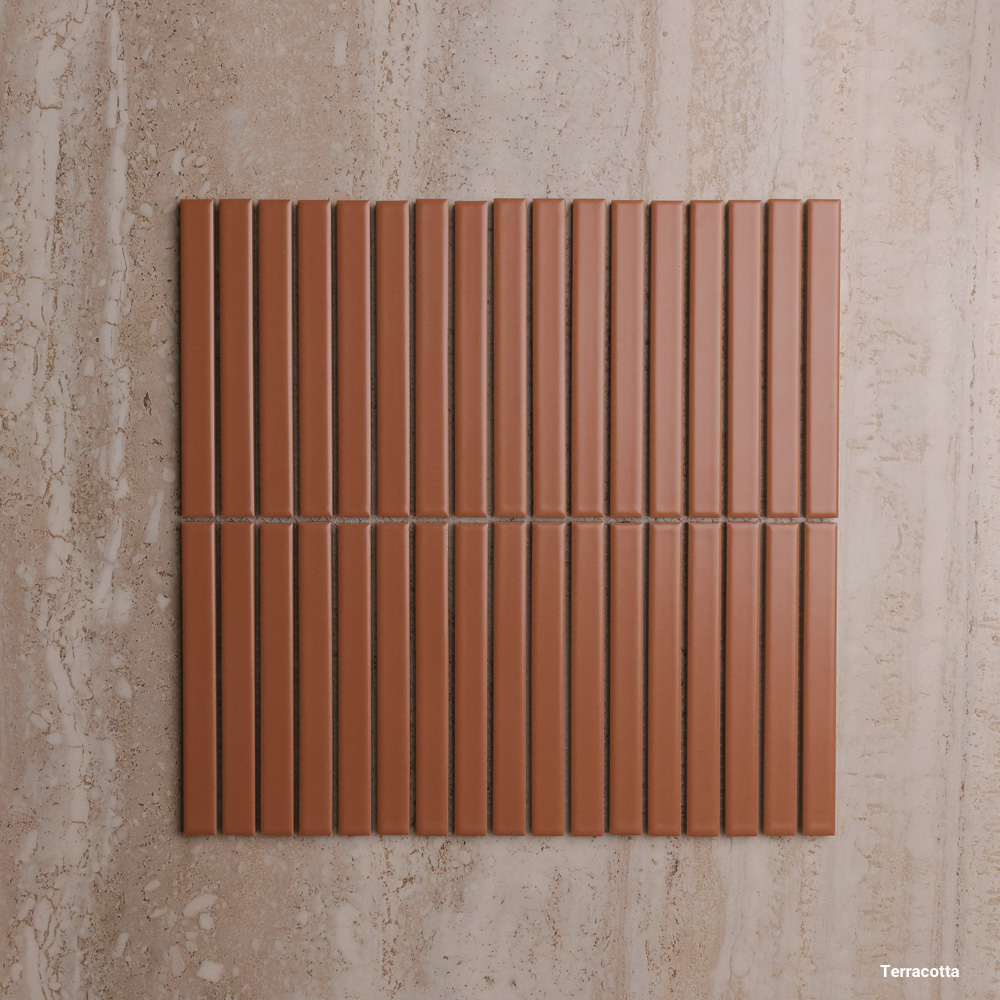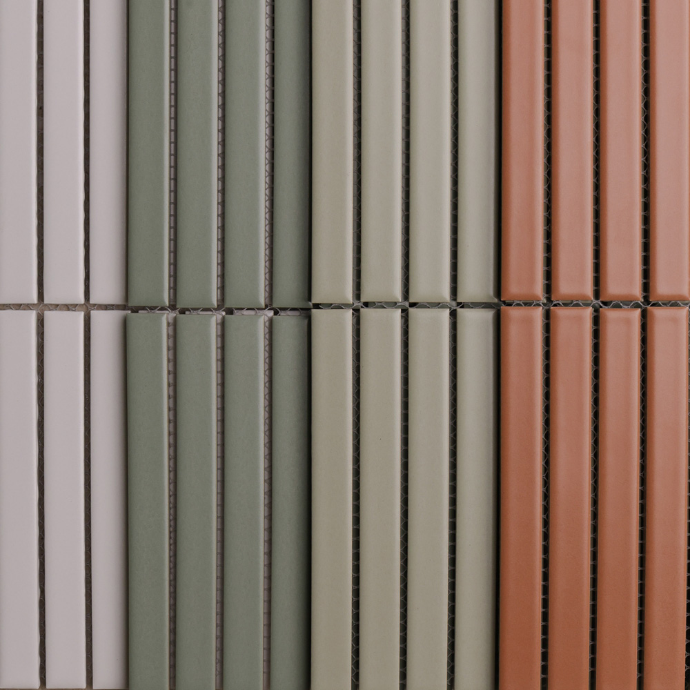 A modern interpretation of the classic Kit Kat mosaic, reimagined in porcelain for strength, precision and architectural appeal. Choose from two sophisticated sage tones, a crisp white and the perfect terracotta, a palette designed to evoke calm, spa-like interiors. The ideal balance of texture, tone and durability.