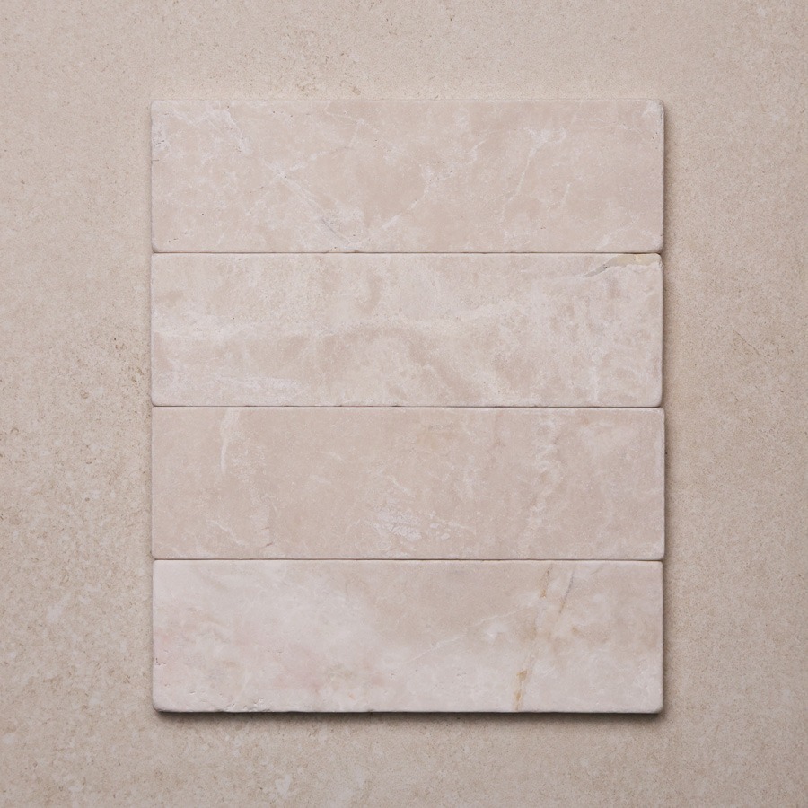 Enhance your space with the timeless elegance of Subway Botticino Tumbled marble tiles. Featuring a tumbled finish, these natural stone tiles offer a classic, aged look with soft edges, perfect for creating a warm and inviting atmosphere.