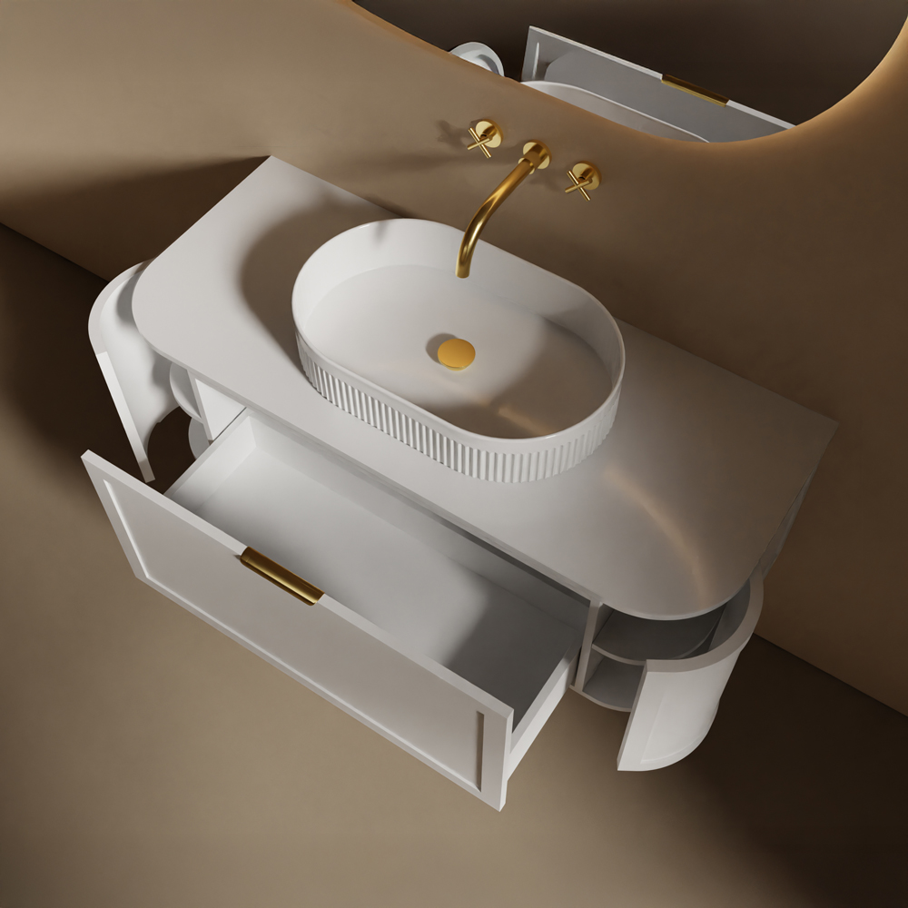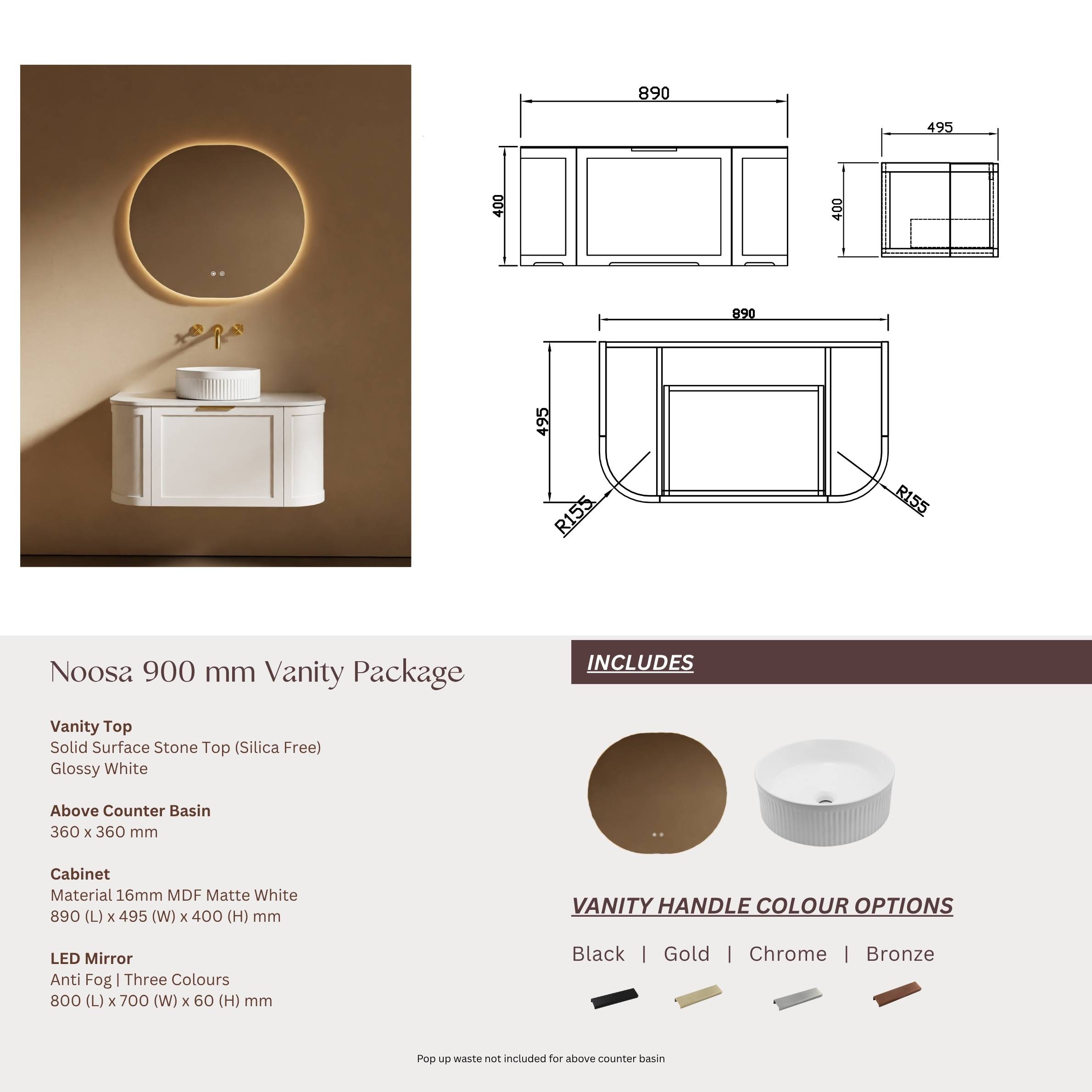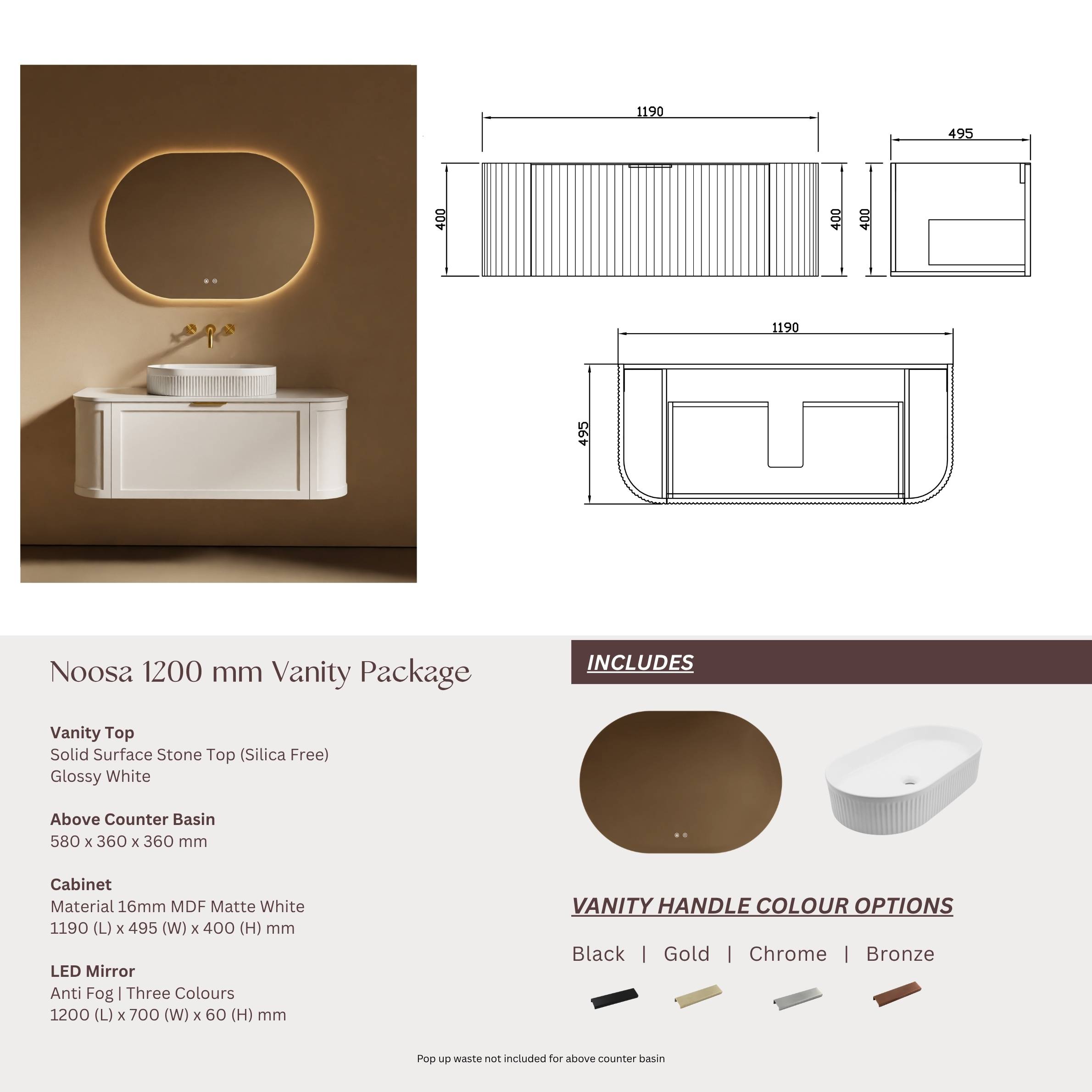| Elevate your bathroom with the timeless elegance of the Noosa Wall Hung Vanity. Crafted with a 16mm MDF matte white inside particle board, this vanity brings natural warmth and modern sophistication to any space. | |