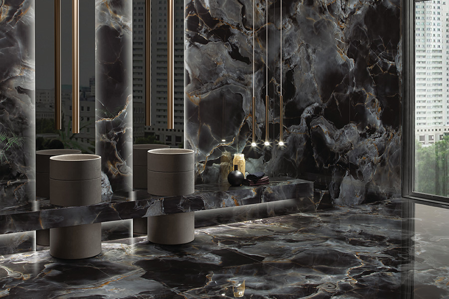ONICE REALE pays homage to a rare variety of Persian Onyx; with its deep emerald tones and the exclusiveness note lent by the differing intensity of the shading.