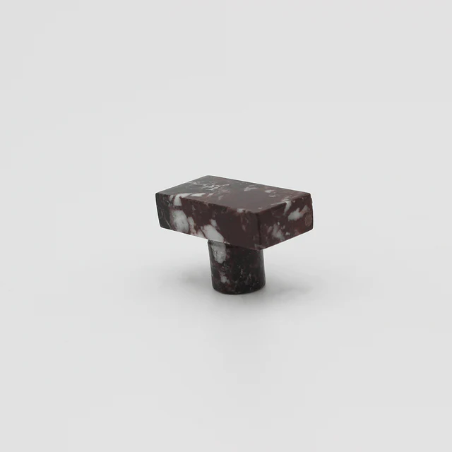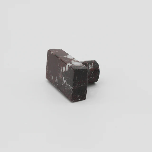 Introduce sculptural elegance and deep, rich tonality with our Stone Knobs. Expertly carved from solid marble, this playful yet refined clover silhouette adds character and luxury to any space. The stone’s dramatic burgundy base, paired with striking white veining, creates a bold visual moment across kitchens, bathrooms, wardrobes, or furniture accents.