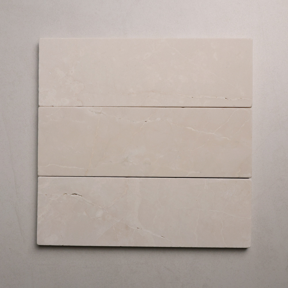 Enhance your space with the timeless elegance of Subway Botticino Tumbled marble tiles. Featuring a tumbled finish, these natural stone tiles offer a classic, aged look with soft edges, perfect for creating a warm and inviting atmosphere.