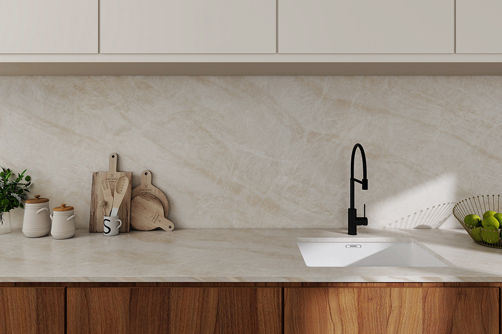 Think bigger, brighter, and bolder with MEGASLIM Taj Mahal – a stunning large-format porcelain slab designed to open up your space and create seamless, luxurious surfaces. Its soft Taj Mahal stone veining and honed finish deliver a refined, natural look suitable for everything from floors and walls to showers, benchtops, and vanities.