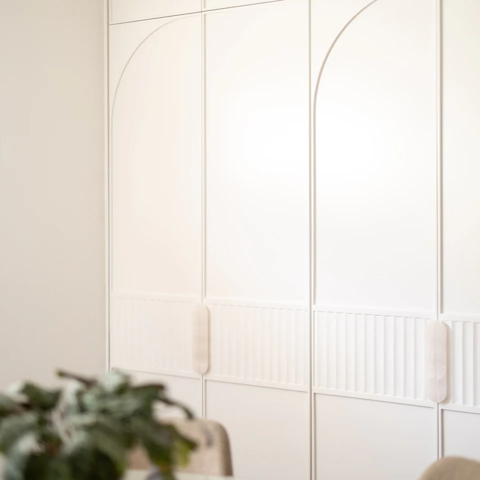 Designed as a symmetrical split pair, the handles create a seamless vertical line — perfect for vanities, wardrobes, or tall joinery.