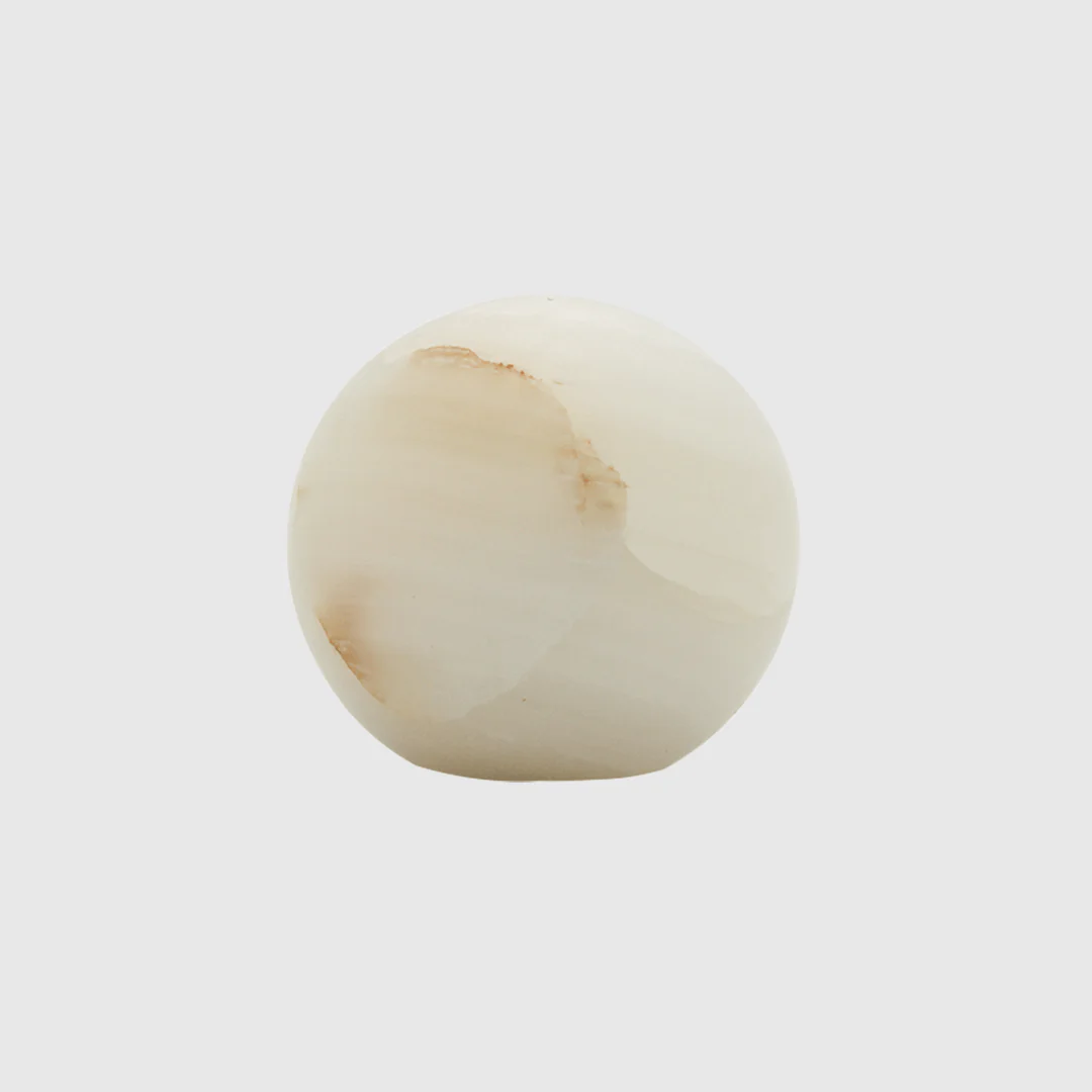 Refined yet bold, the Sphere Cabinet Knob in White Onyx brings a luminous softness to contemporary cabinetry. Expertly carved from solid natural Onyx and sealed for durability, its perfectly rounded form highlights the stone’s translucent veining and gentle glow.