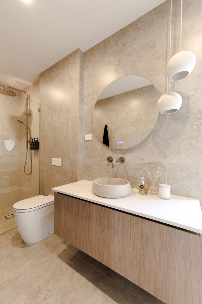 Inner Western Sydney renovation project in Marrickville was to convert existing divided spaces into a brand new ensuite and large main bathroom